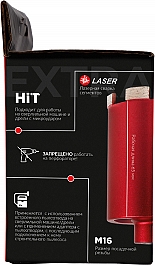 - Лазерная сварка: изготовлена с применением лазерной сварки алмазных сегментов к корпусу коронки, что обеспечивает прочное соединение и практически исключает отрыв сегмента в процессе работы. Коронки с лазерной сваркой сегментов возможно использовать без водяного охлаждения