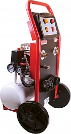 - Надежная портативная мощная электрическая установка для заполнения и очистки на профильной раме с 2-мя колесами, установленными на стальном несущем валу