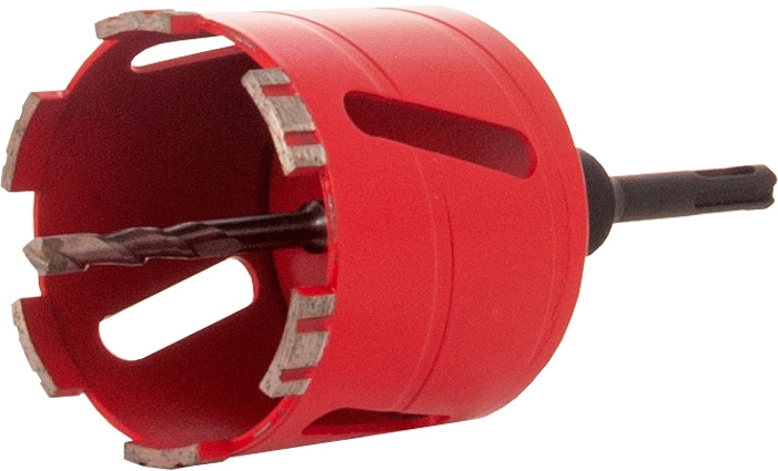 Коронка для подрозетников по бетону с переходником M16/SDS-Plus Diam Master Line 82 мм (Диам Мастер Лайн 82 мм) – алмазное кольцевое сверло для ручного сухого сверления глухих подрозеточных отверстий Ø 82 мм в стенах из кирпича, неармированного и слабоармированного бетона без применения охлаждающей жидкости. Лазерная сварка алмазных сегментов обеспечивает надежное соединение сегментов и корпуса сверла, что практически исключает отрыв сегмента в процессе сверления.