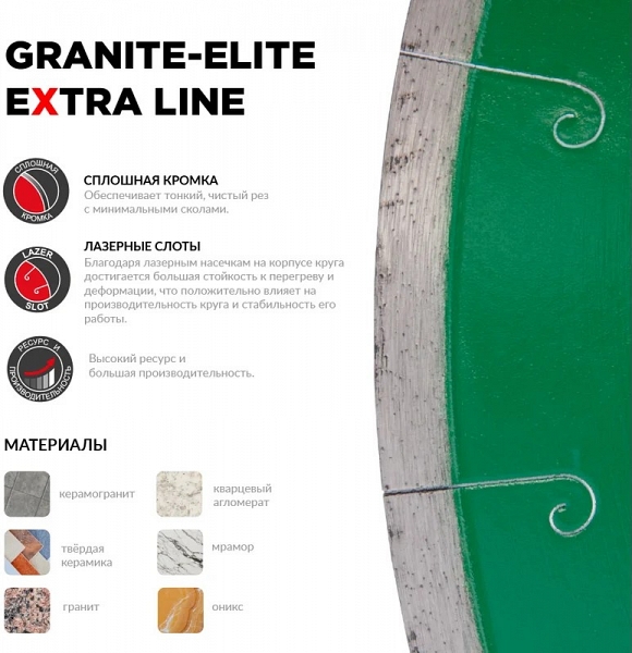 Преимущества круга отрезного алмазного Diam Extra Line 1A1R Корона Granite-Elite 500 мм: