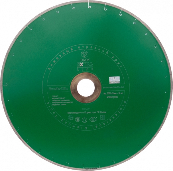- Корейские технологии: изготовлен по технологиям и под контролем ведущих производителей алмазного инструмента Южной Кореи, специально по заказу ГК Диам