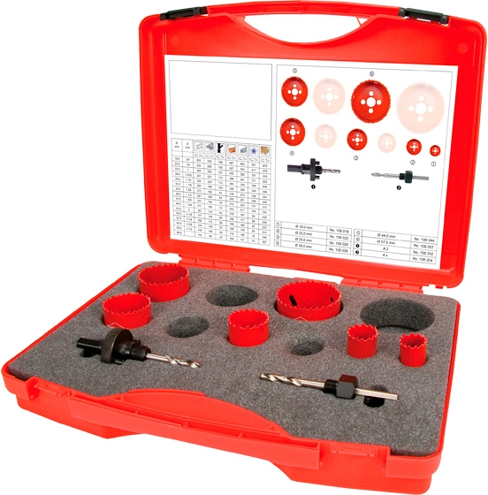 Набор биметаллических коронок Super-Ego 19-22-29-38-44-57 мм (Супер-Эго 19-22-29-38-44-57 мм предназначен для сверления отверстий Ø 19, 22, 29, 38, 44, 57 мм, глубиной до 38 мм в дереве, стали, латуни, бронзе, алюминии и пластике.