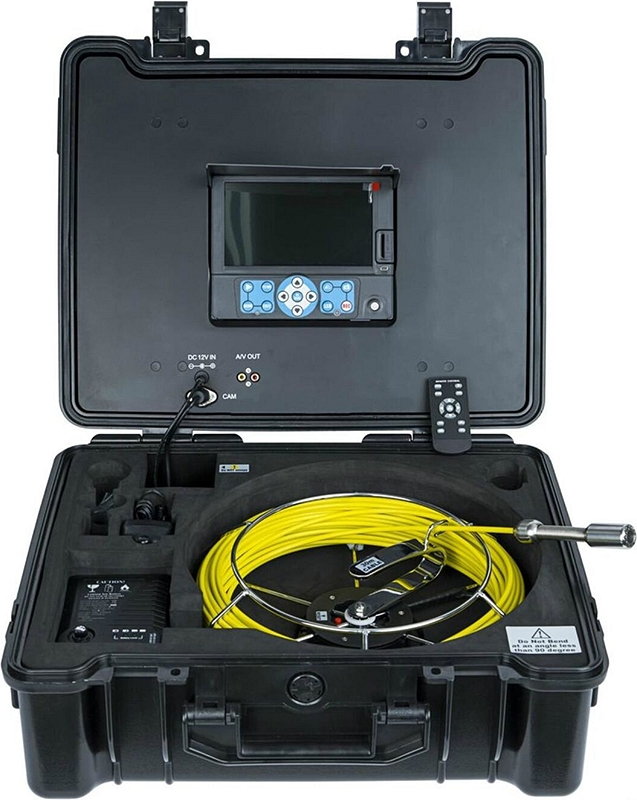 - Уникальный дизайн позволяет все ее части (головку камеры, монитор, барабан с кабелем, аккумулятор и т.д.) поместить в один прочный и водонепроницаемый кейс, при этом все эти узлы уже между собой соединены таким образом, что соответствует принципу Open & Go – Открой и Работай