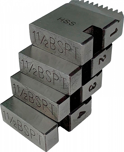 Резьбонарезные гребенки для электрических клуппов Kern BSPT R HSS 1 1/2" (Керн БСПТ Р ХСС 1 1/2") предназначены для нарезки правой трубной конической резьбы BSPT R на трубах Ø 1 1/2".