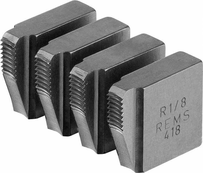 Резьбонарезные плашки Rems R 1/8" (Ремс Р 1/8") предназначены для нарезки правой трубной конической резьбы R (ISO 7-1, EN 10226 (DIN 2999, BSPT)) на стальных трубах Ø 1/8" с применением ручных и электрических резьбонарезных трубных клуппов Ева, Амиго, Амиго 2, Амиго 2 Компакт.