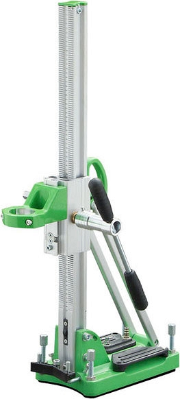 Сверлильная стойка Dr. Schulze Drill 16V (Доктор Шульце Дрилл 16В) – сверхлегкая, компактная керносверлильная станина со встроенным вакуумным основанием, лазерным индикатором центра отверстия и хомутным креплением электробормотора Ø 60 мм для сверления отверстий Ø до 160 мм под углом до 45° в бетоне, железобетоне, кирпиче, камне и т.д. Используется со сверлильными двигателями Dr. Schulze DK 08, BDK 1 Plus / 2 Plus, а также других производителей.
