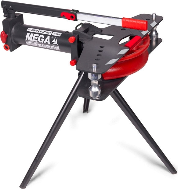 Трубогиб гидравлический ручной Mega DR2 (Мега ДР2) предназначен для гибки стальных водопроводных и газопроводных труб Ø 3/8" – 2", согласно DIN 2440 и 2441 на угол до 180° сменными гибочными сегментами под определенный диаметр трубы.