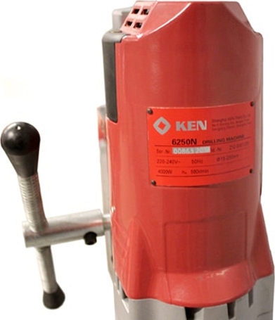 Установка алмазного бурения Ken 6250N (Кен 6250Н) предназначена для сверления отверстий Ø 25 – 250 мм в бетоне, железобетоне, камне, кирпиче и других строительных материалах, вертикально под углом 90°, с подачей и без подачи воды, при прокладке коммуникаций.