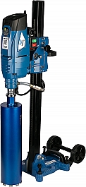 - Транспортировочные колеса позволяют без труда перемещать штатив с уже установленным мотором и коронкой по строительной площадке