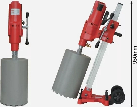 Установка для алмазного бурения Saturn OB-355B (Сатурн ОБ-355) предназначена для сверления круглых отверстий Ø 35 – 355 мм в бетонных, железобетонных, базальтовых, асфальтовых и других поверхностях под трубы вентиляции, теплоснабжения, водоснабжения и подобных коммуникаций, под углом 90° – 45°, с подачей воды.